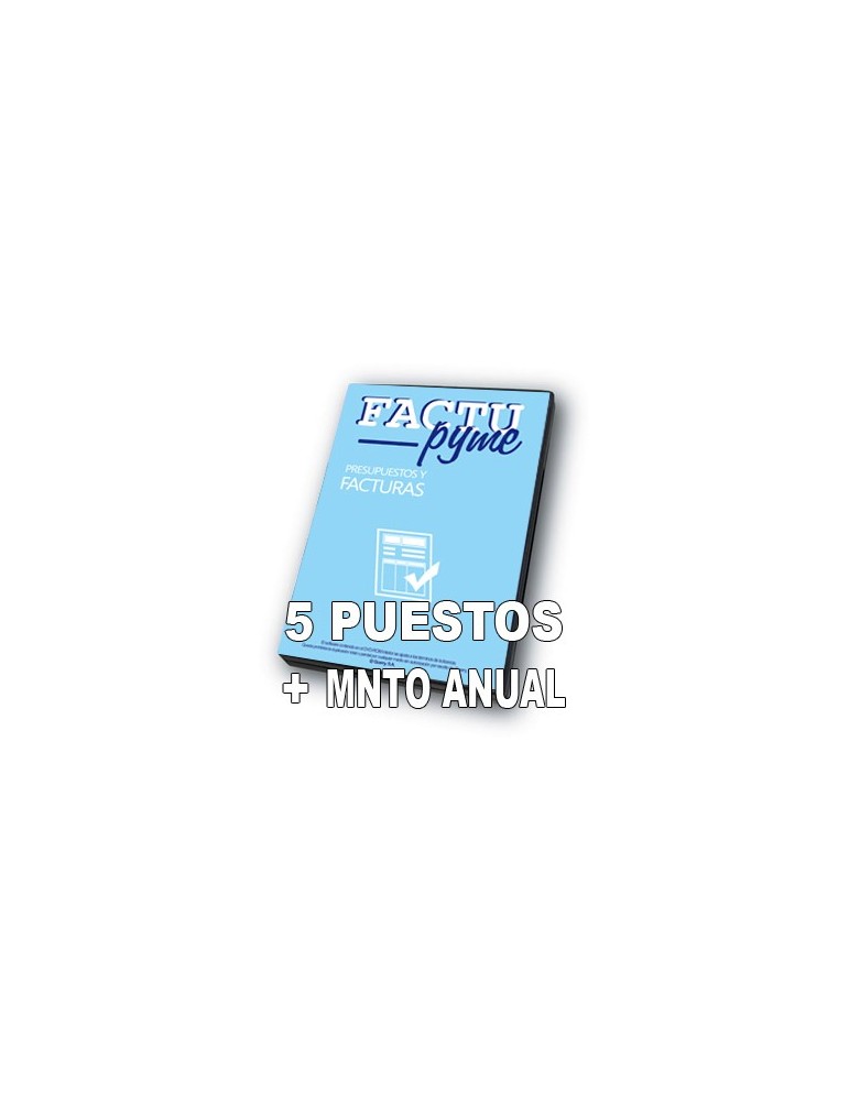 EN UN SOLO PACK, EL PROGRAMA FACTUPYME 5 USUARIOS Y EL SERVICIO ANUAL DE MANTENIMIENTO, A UN PRECIO DE OFERTA.